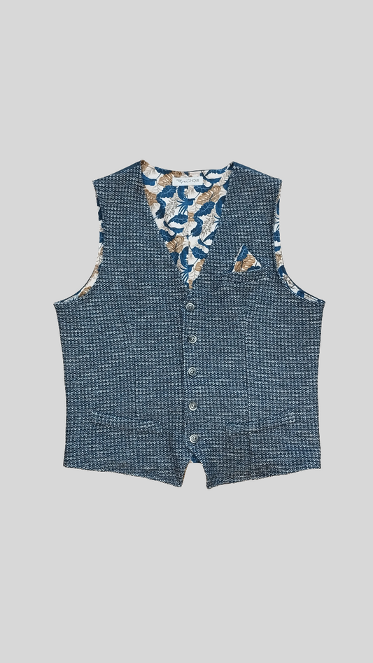 Gilet uomo blu in tessuto lavorato – elegante, versatile e con fodera fantasia