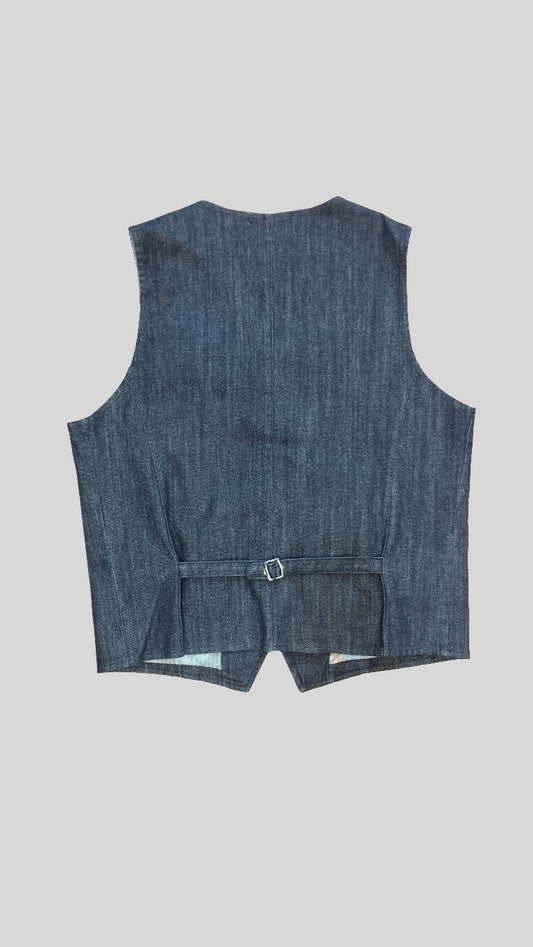 Gilet uomo in denim scuro – elegante, versatile e con fodera fantasia